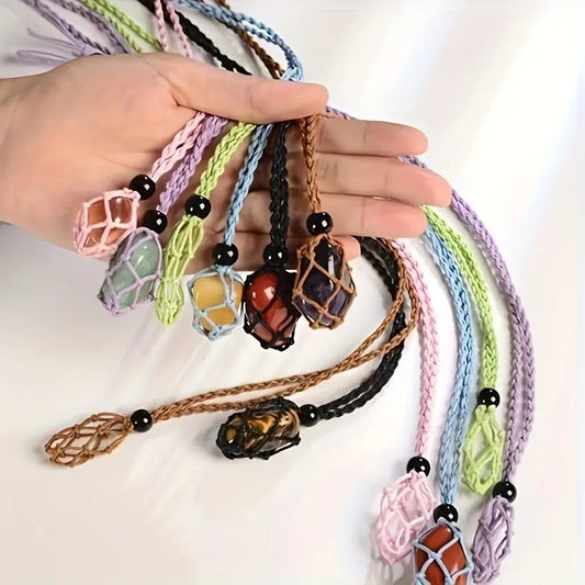 Pendentif cage à cristaux macramé