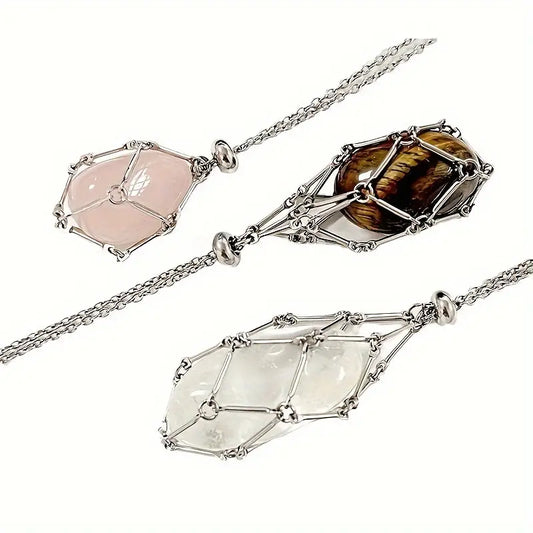 Pendentif argenté cage à cristaux