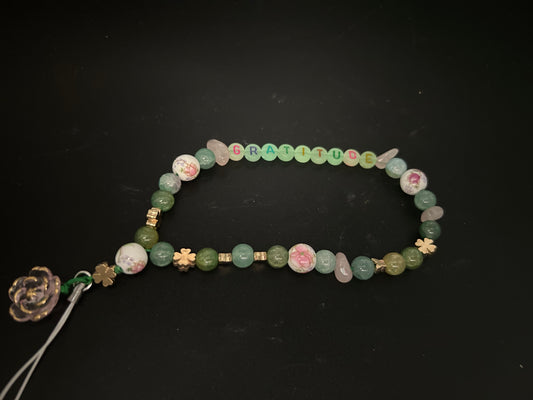 Bijou de GSM « Gratitude » Quartz rose et perles fantaisie