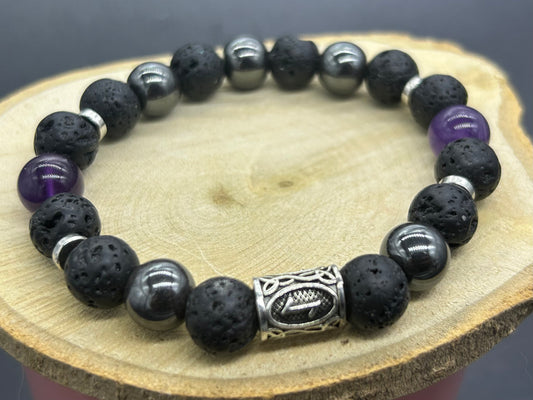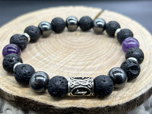 Bracelet Viking Pierre lave/Améthyste/Hématite