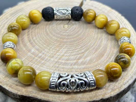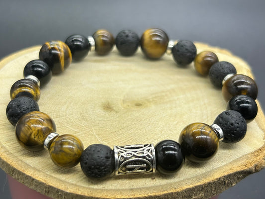 Bracelet Viking Œil de tigre gold/Pierre de lave
