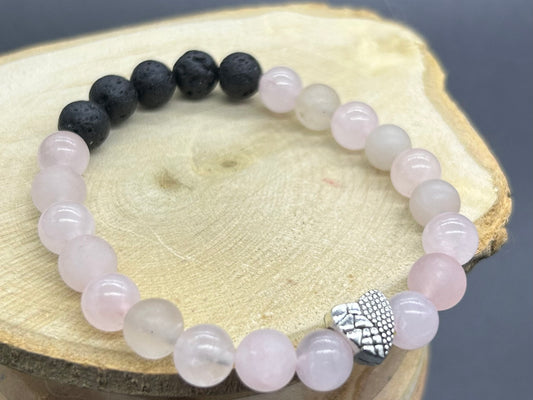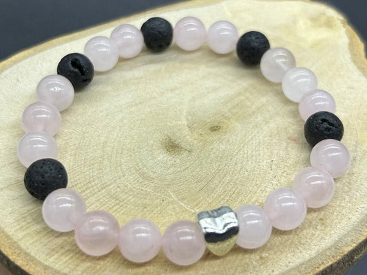 Bracelet diffuseur Quartz rose cœur + HE au choix