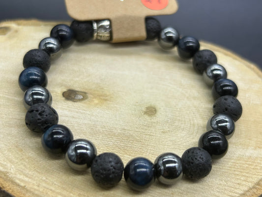Bracelet Hématite/Pierre de lave/Oeil de faucon