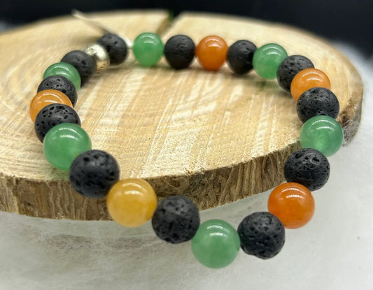 Bracelet Aventurine verte et orange/Pierre de lave