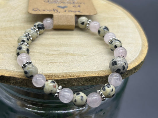 Bracelet enfant Jaspe dalmatien Quartz rose