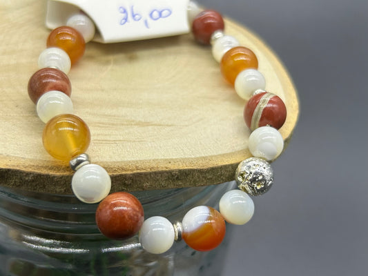 Bracelet Cornaline Jaspe rouge et Nacre
