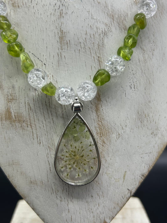 Collier Epoxy Péridot Cristal de roche