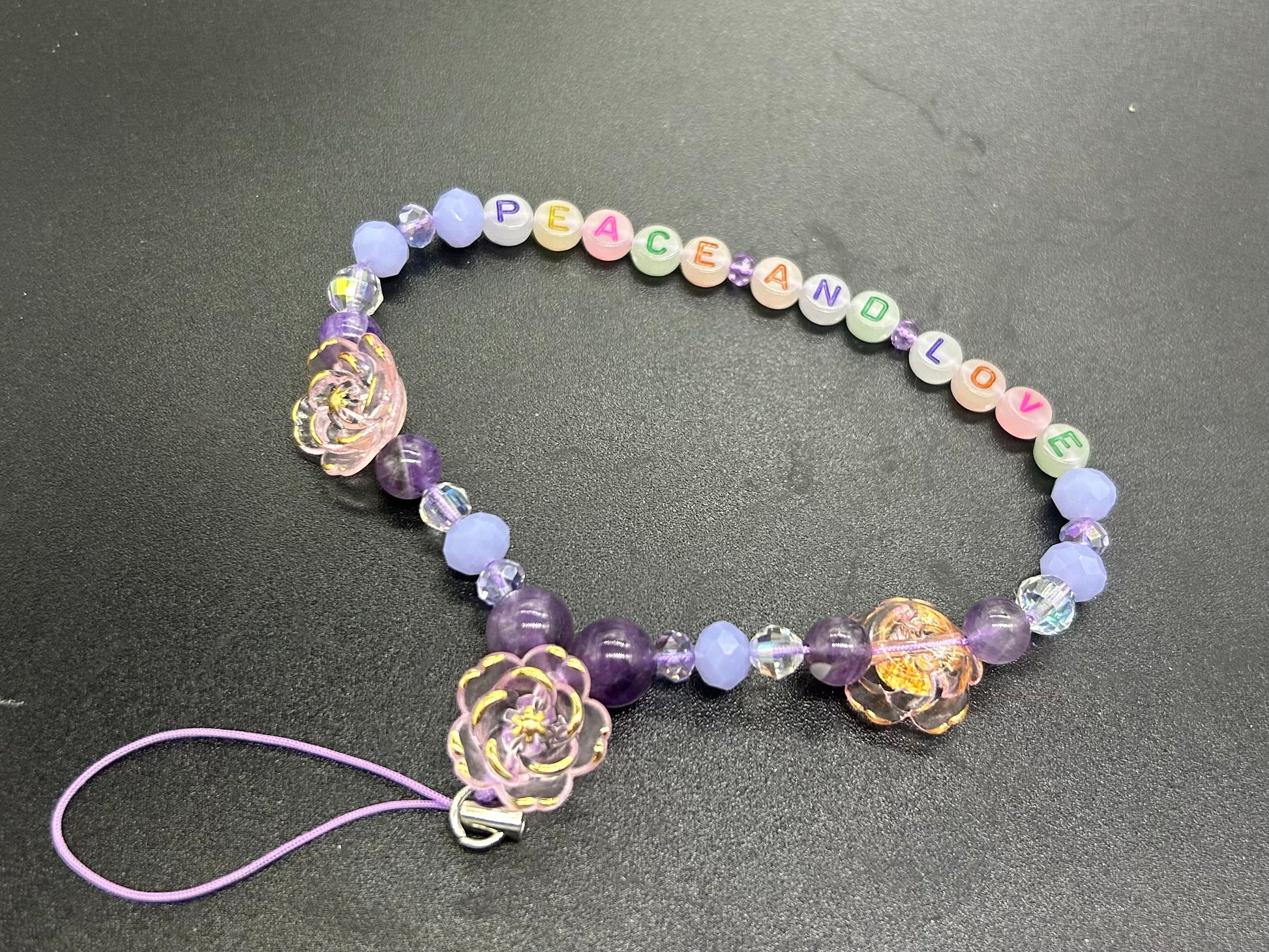 Bijou de GSM « Peace And Love » Améthyste et perles fantaisie