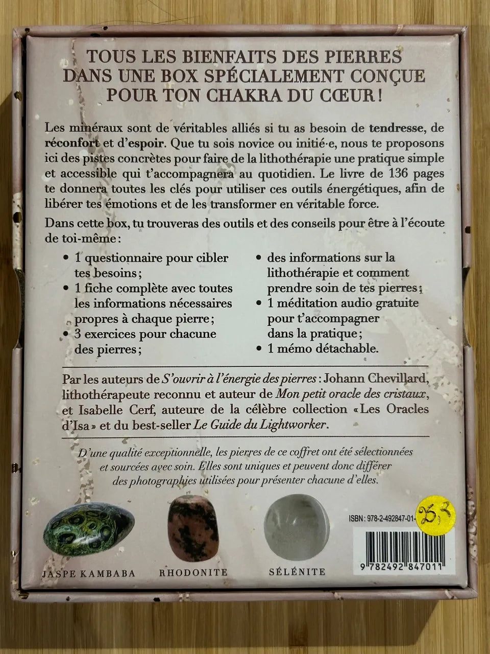 Une sympathique guidance vers l'amour inconditionnel et l'estime de soi via un petit fascicule pratique et 3 cristaux de qualité dans cette Litho Box magique